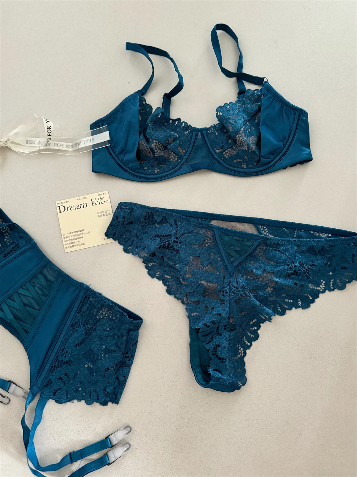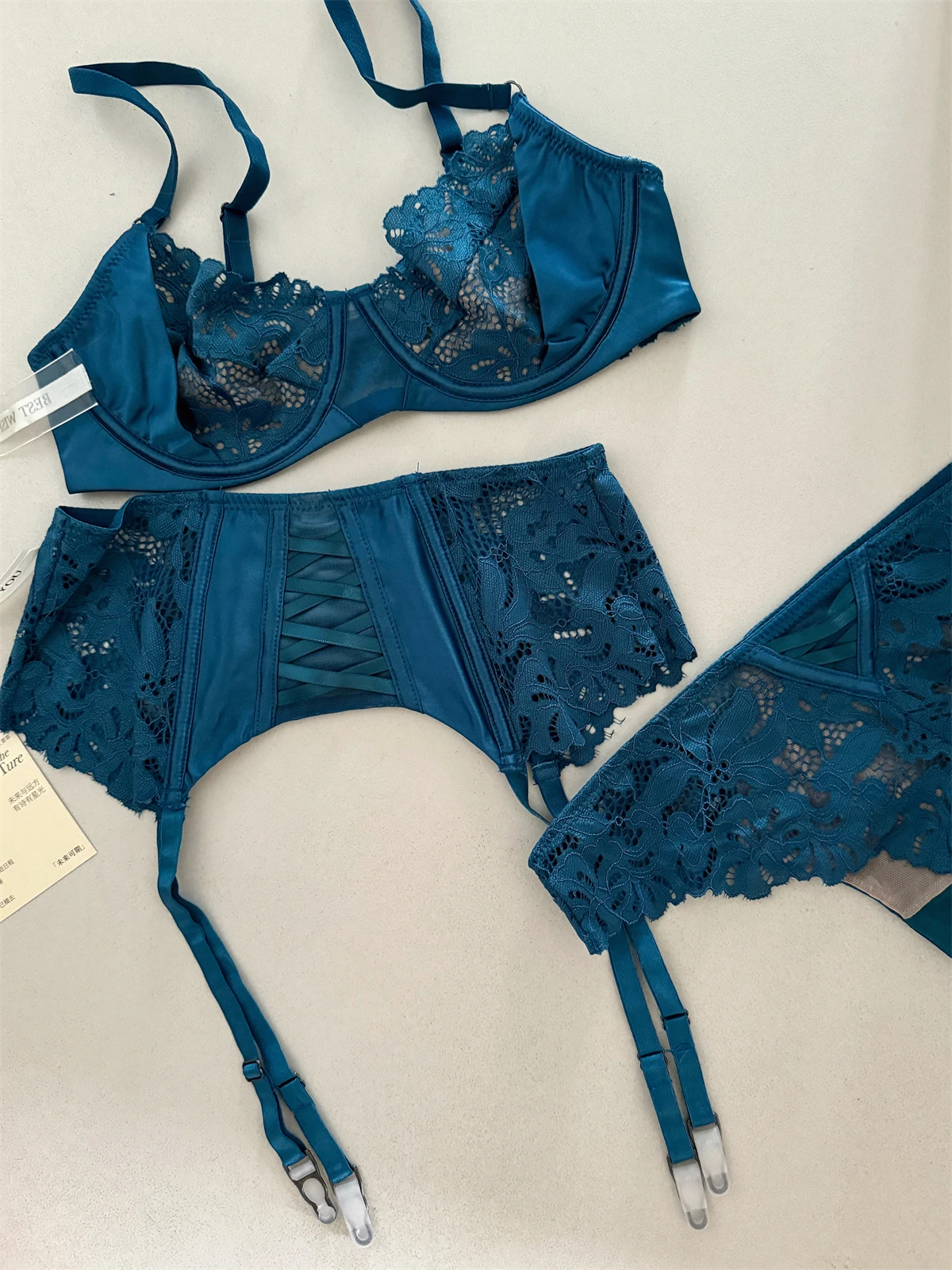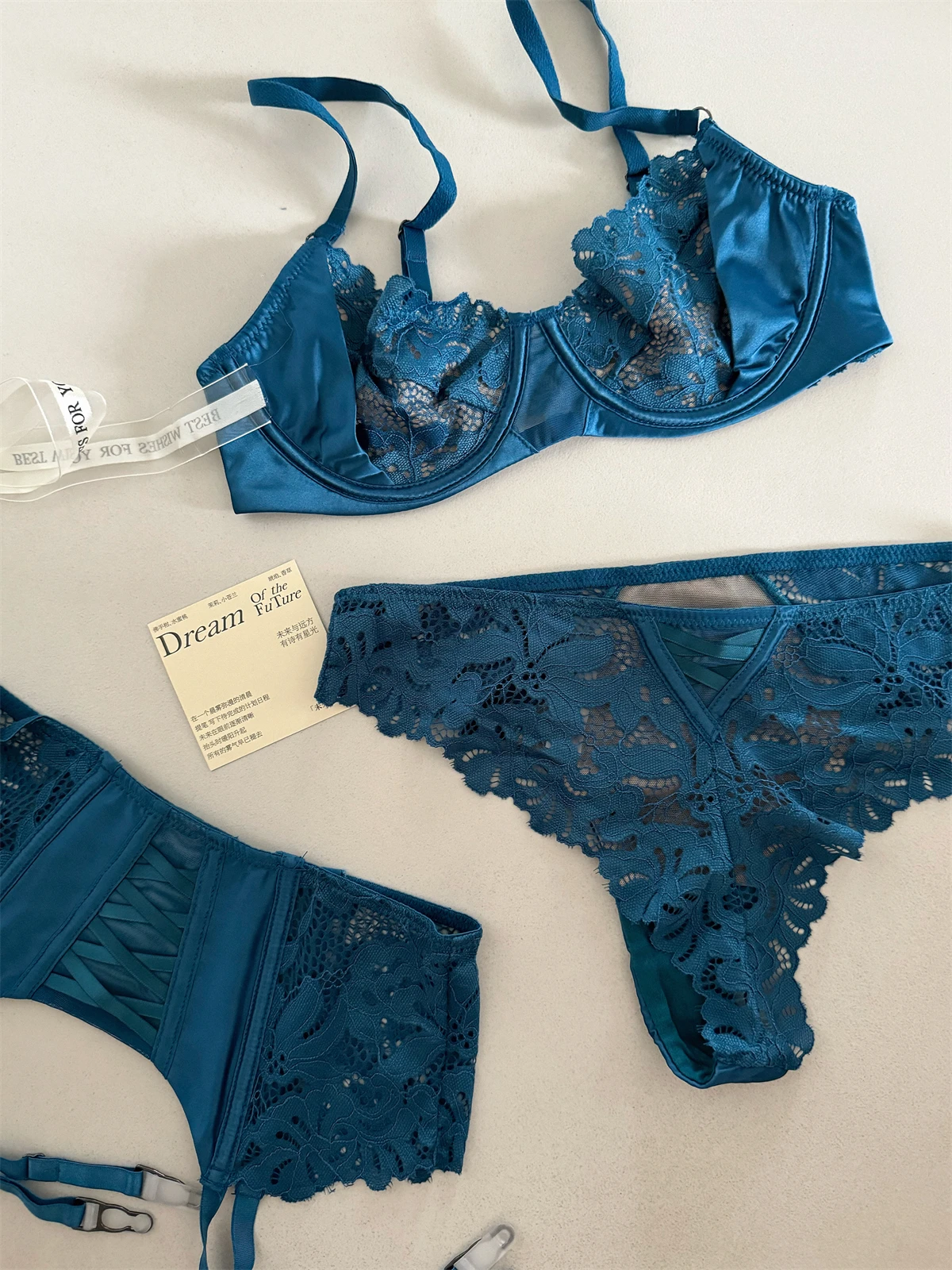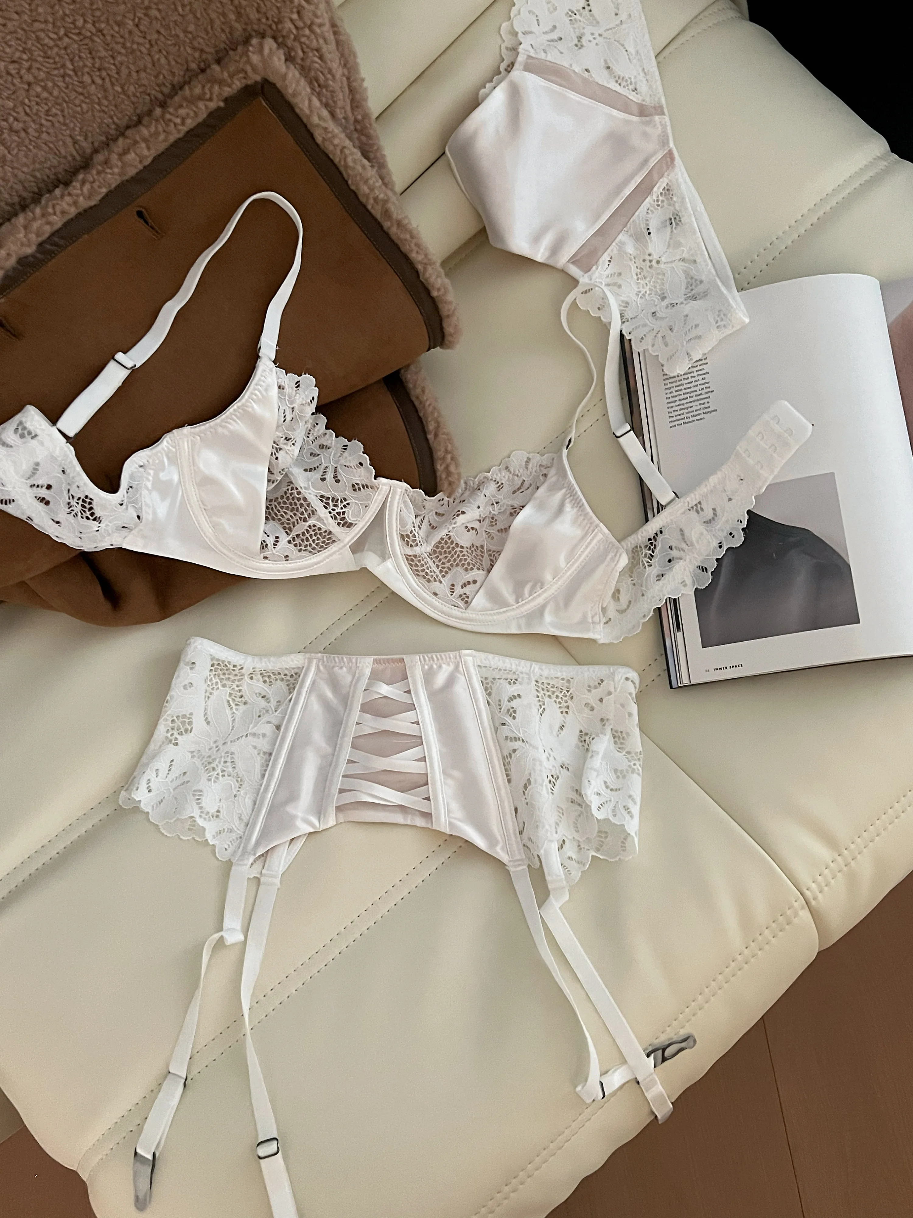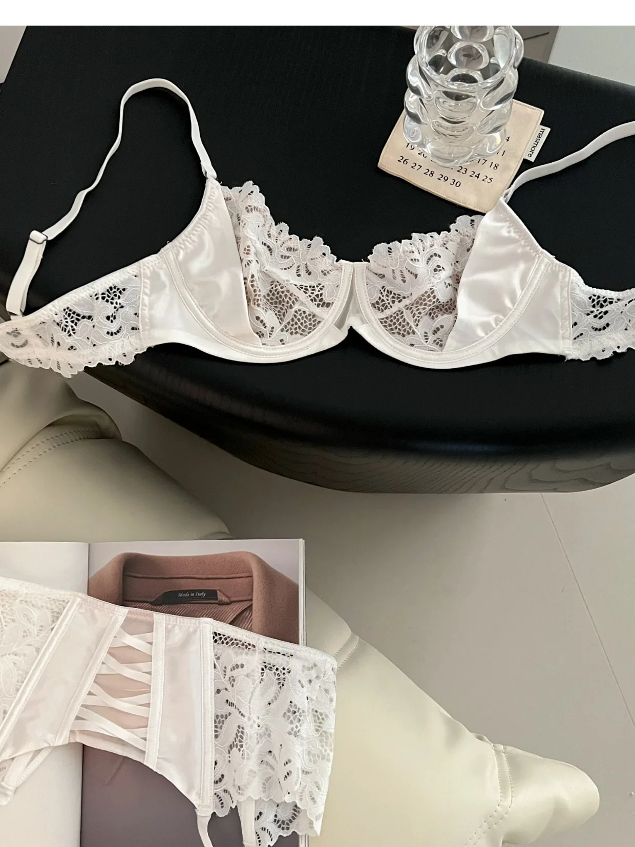 Sexy lingeire satin lace girls underwear large breasts show small collection of side breasts anti-sagging bra set comfortable